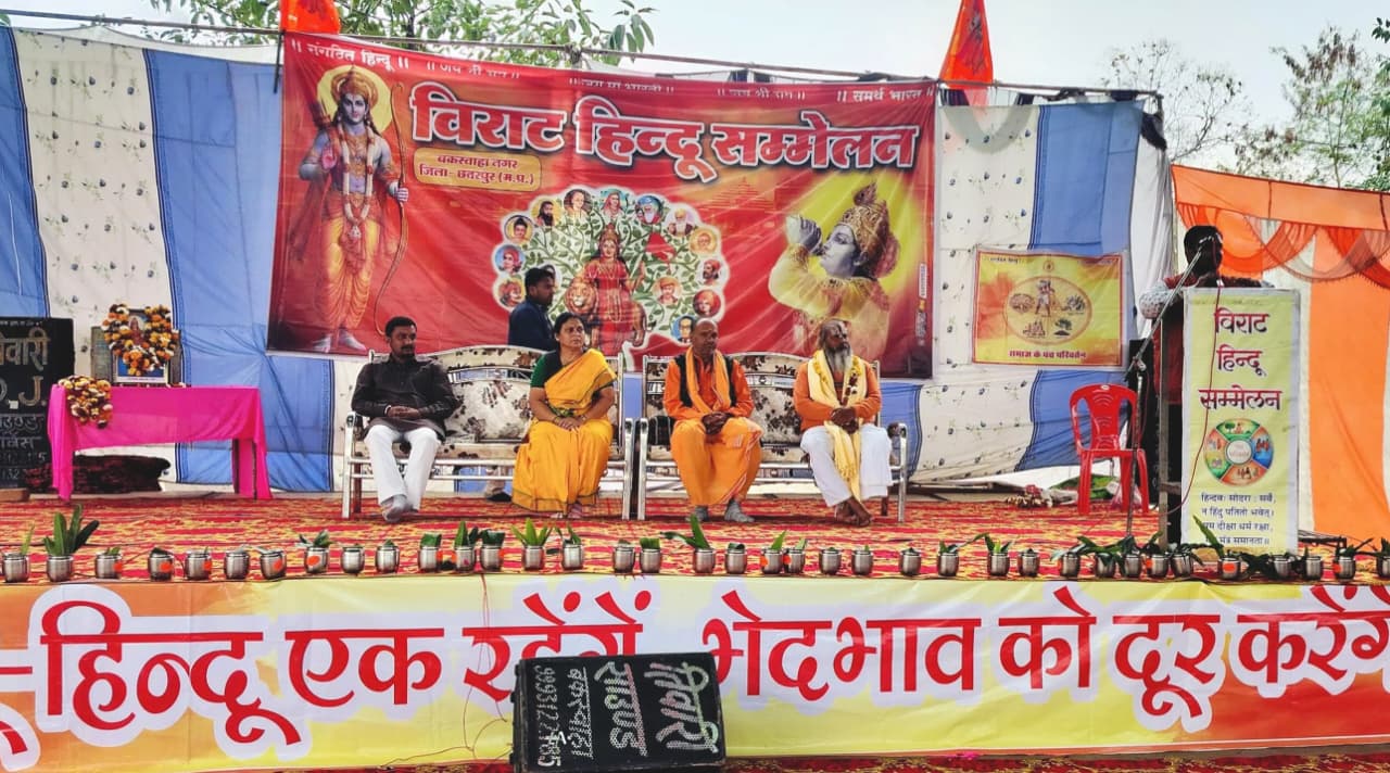 बकस्वाहा की पावन धरा शनिवार को उस समय भगवा रंग में सराबोर हो गई, जब नगर के बस स्टैंड स्थित अटल भवन परिसर में ‘विराट हिंदू सम्मेलन’ का भव्य आयोजन संपन्न हुआ। ‘मम दीक्षा हिंदू रक्षा’ के पावन संकल्प के साथ आयोजित इस समागम ने न केवल धार्मिक चेतना जगाई, बल्कि संगठित और समरस समाज का एक सशक्त