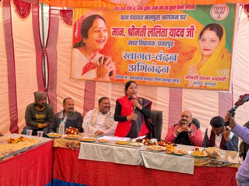 छतरपुर विधायक श्रीमती ललिता यादव का ग्रामवासियों ने जोरदार स्वागत के साथ ही अपने सुख-दुख व समस्यायें भी बताई।